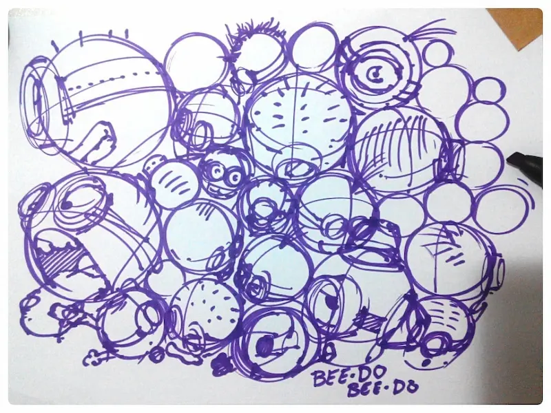 All started with some random circles. I was wondering what to draw, and suddenly, some Minions head pop up from these circles in my mind! That was irresistible. So I sketched them !!