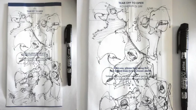 What I love about doodling on receipts is that you don’t get to choose your format. You draw with what you have on hand, and you have to adapt. Plus, since it’s just a receipt that will end up in the bin anyway, you’re not precious with your sketch.