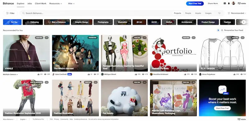 Behance functions like social media, letting you explore beautiful galleries. It’s less job-search focused but perfect for inspiration and exposure to cutting-edge creative work.