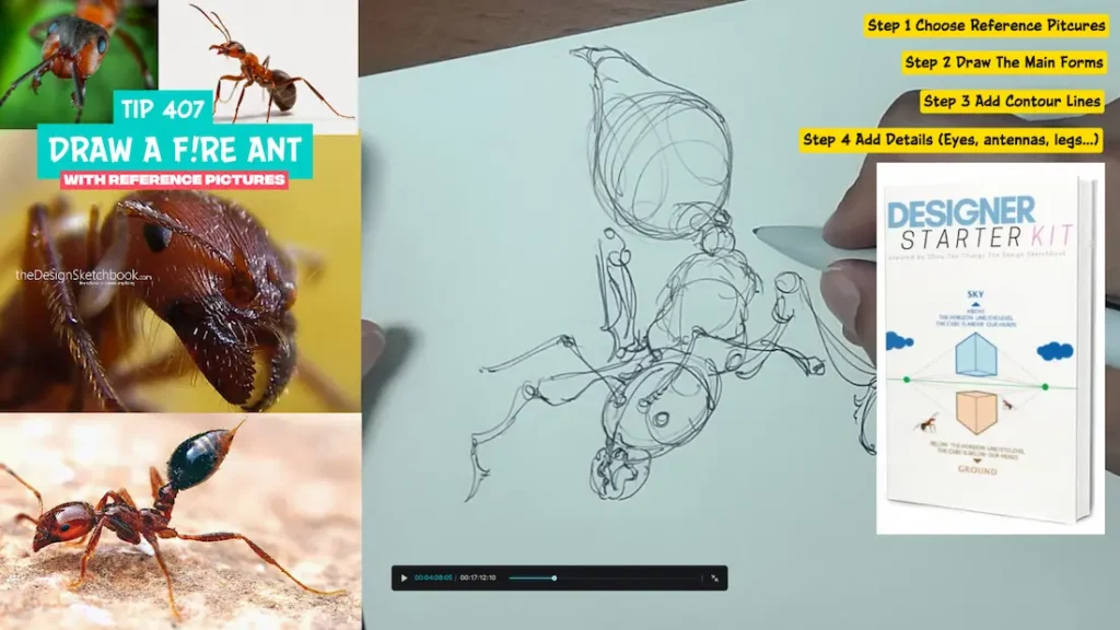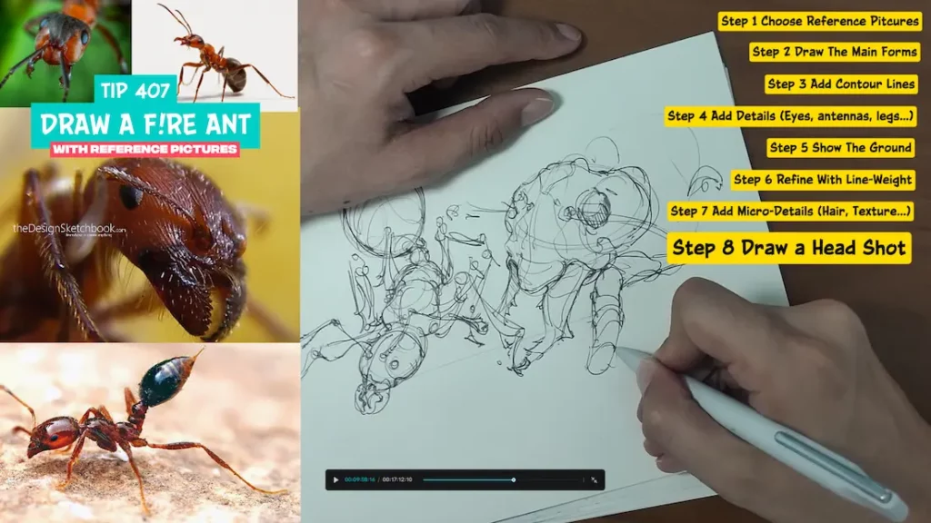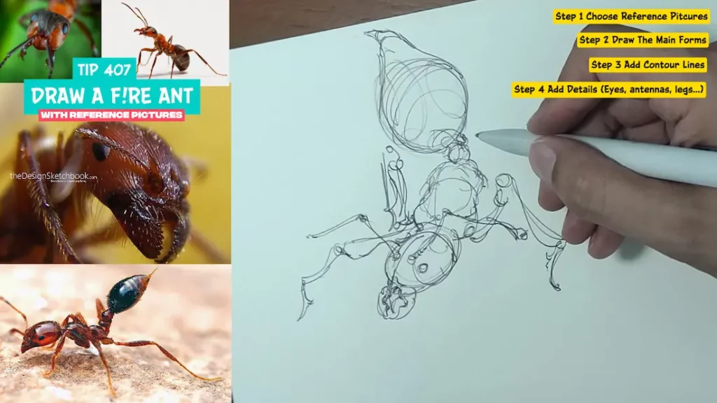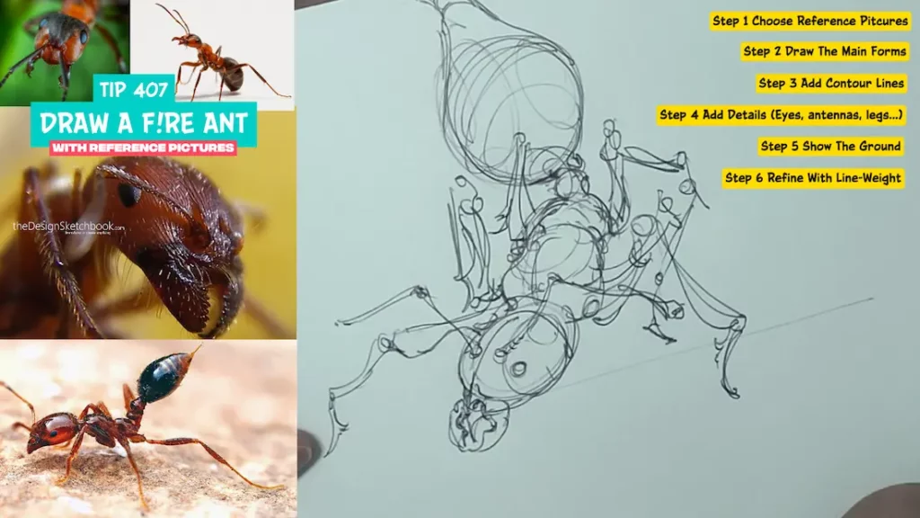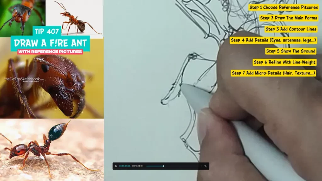 In this article, you will learn how to draw a fire ant step-by-step using reference pictures, develop your observation skills, and improve your drawing technique, all while enjoying the drawing process in a relaxed, friendly approach for 17 minutes and 17 seconds.