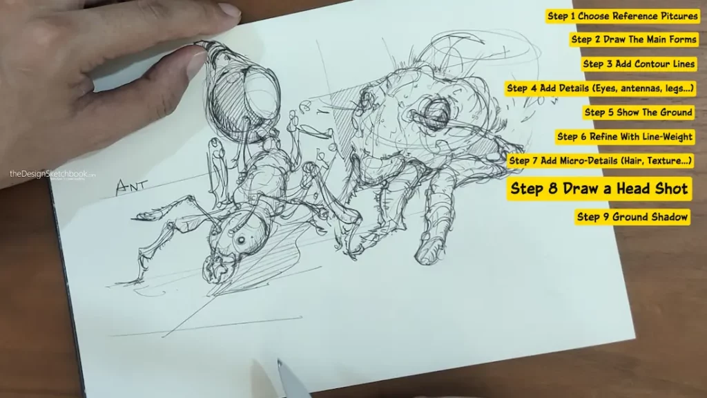 The very first step in creating a compelling and accurate drawing is to collect multiple reference pictures of the fire ant from different viewpoints. High-quality references are invaluable when: