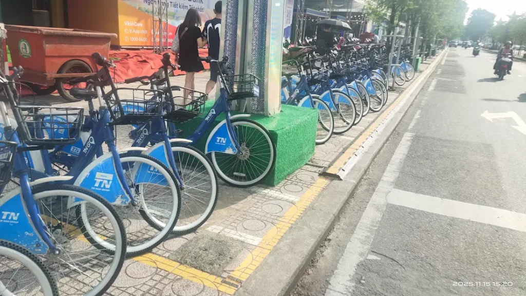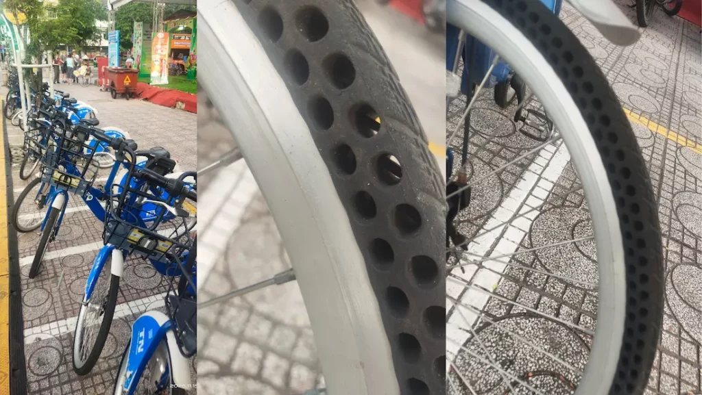 Yesterday, I was walking through the city of Saigon and noticed a shared bike for rent with tires full of holes (See Photos).